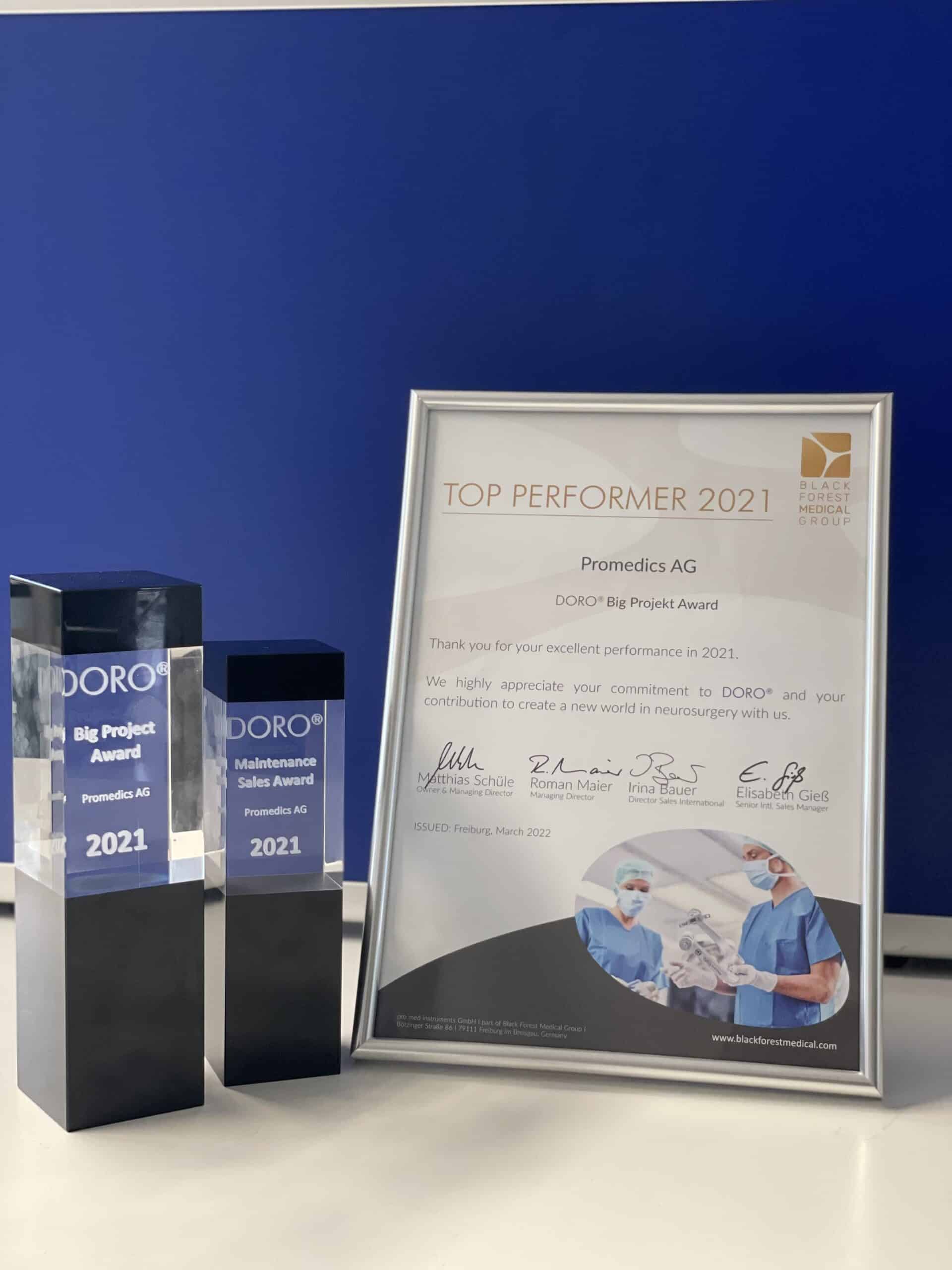 Nous sommes fiers d’avoir été attribué par Black Forest Medical Group PMI, qui nous a décerné le «DORO® Big Project Award» et le «DORO® Maintenance Award» pour 2021!